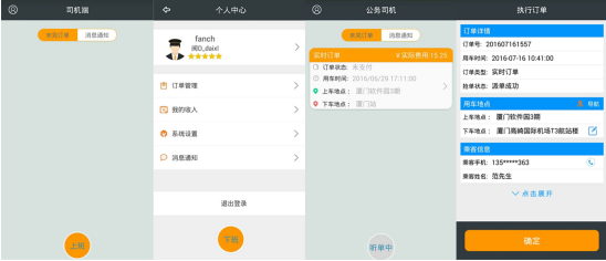 司機(jī)端APP為公眾的公務(wù)用車(chē)服務(wù)提供用車(chē)承接服務(wù),包括接單、訂單管理、行程服務(wù)、行程計(jì)費(fèi)等,并為司機(jī)的上下班、個(gè)人信息和收入情況提供信息窗口。